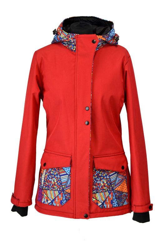 - Softshellová bunda - červená/bláznivé trojúhelníky