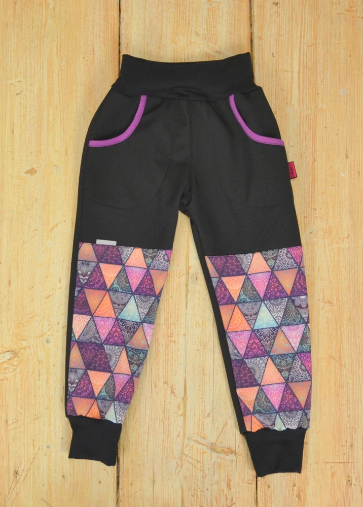 Dětské kalhoty softshellové -černá/mandalové trojúhelníky