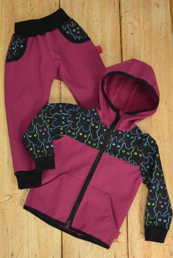 - Dětský softshellový set- fuchsie/kočky