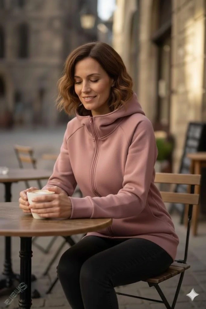 Mikina Shara je vyrobena z měkoučké teplákoviny, která vás na procházce krásně zahřeje. Mikina má prodloužený vyštíhlený střih, kapsy a kapuci. Použitý materiál:warmkeeper s vyšším vlasem 400g/m2 40% BAVLNA, 56% PES, 4% EL,