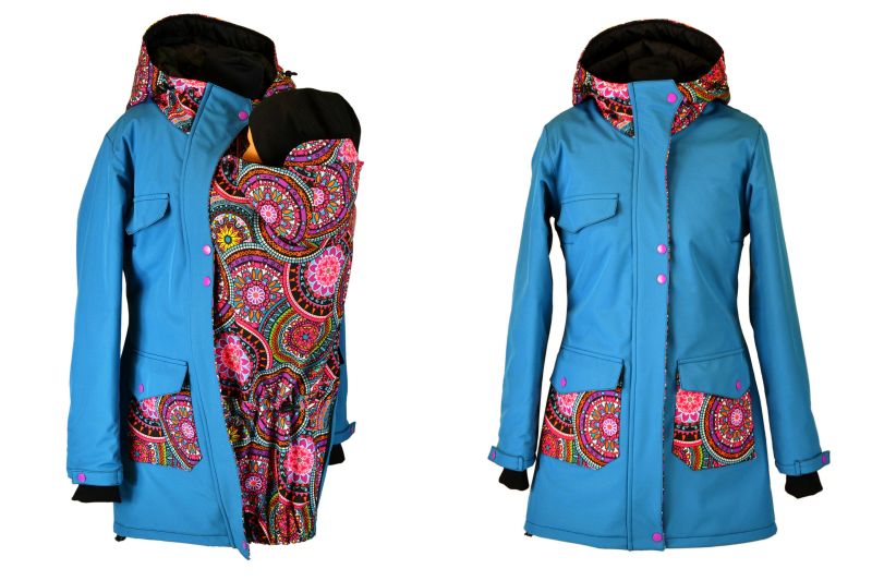 Nosící kabát Shara má vyštíhlený střih s dvojitými kapsami. V délce a v kapuci je gumička s brzdou pro možnost regulace. Pružné manžety ochrání před větrem. Kabátek má u krku chránítko brady. Kabát je vyroben ze zimního softshellu.. Vsadka kabátku je vyrobena ze stejného materiálu a po vepnutí je v celé délce kabátku. Spodní okraj vsadky je ukončený do širší gumy. Vrchní díl vsadky má krytí krku pro maminku na dva druky, které lze rozepnout pro lepší přetažení přes hlavičku dítěte. Vsadka je široká 43 cm a má regulaci s brzdou pod zadečkem, za krkem a okolo kapucky. Kabátek je určen pro maminky nosící v šátku i v nosítku a dále i na období, kdy dítě již nenosí.