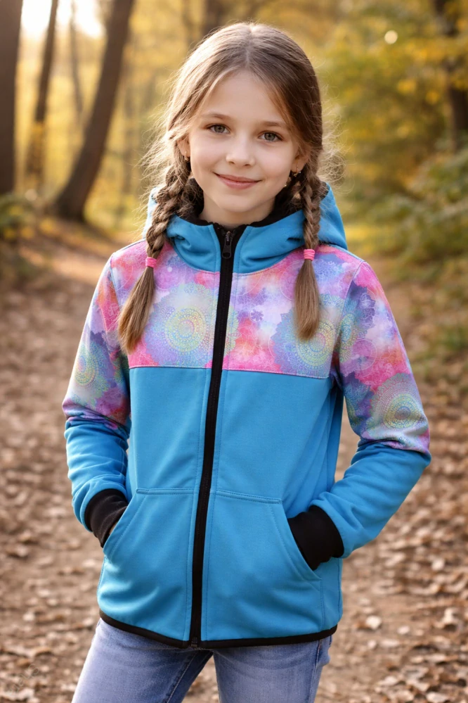 Softshellová bunda - petrolej/mandaly SKLADEM vel.134