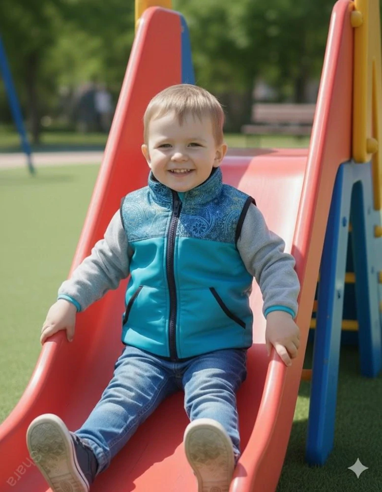 Vesta je ušitá ze zimního softshellu. Délka, průramky jsou olemované lemovací gumou. Vesta má dvě kapsy a chránítko brady a reflex v zadním díle. Vyrobeno v České republice.