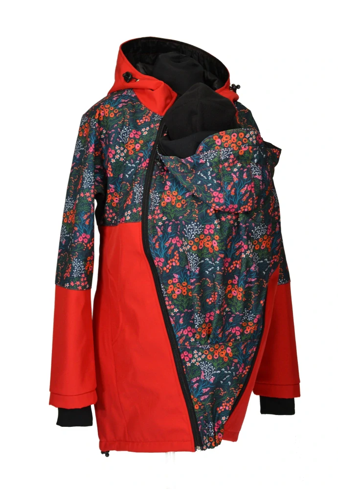 - Softshellový kabát JARO/PODZIM přední nošení - červaná/bobule SKLADEM vel. S /stahování i pod zadečkem